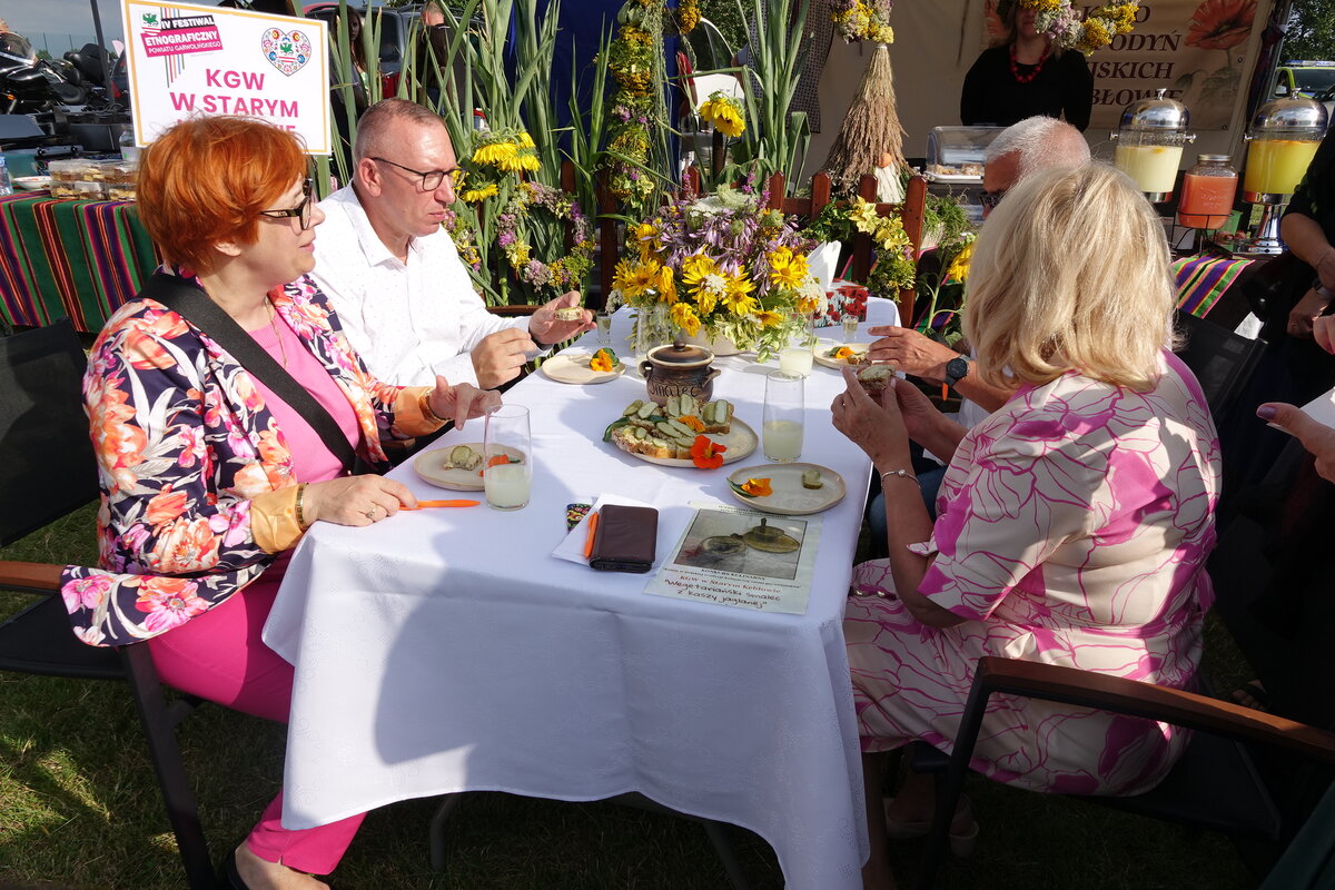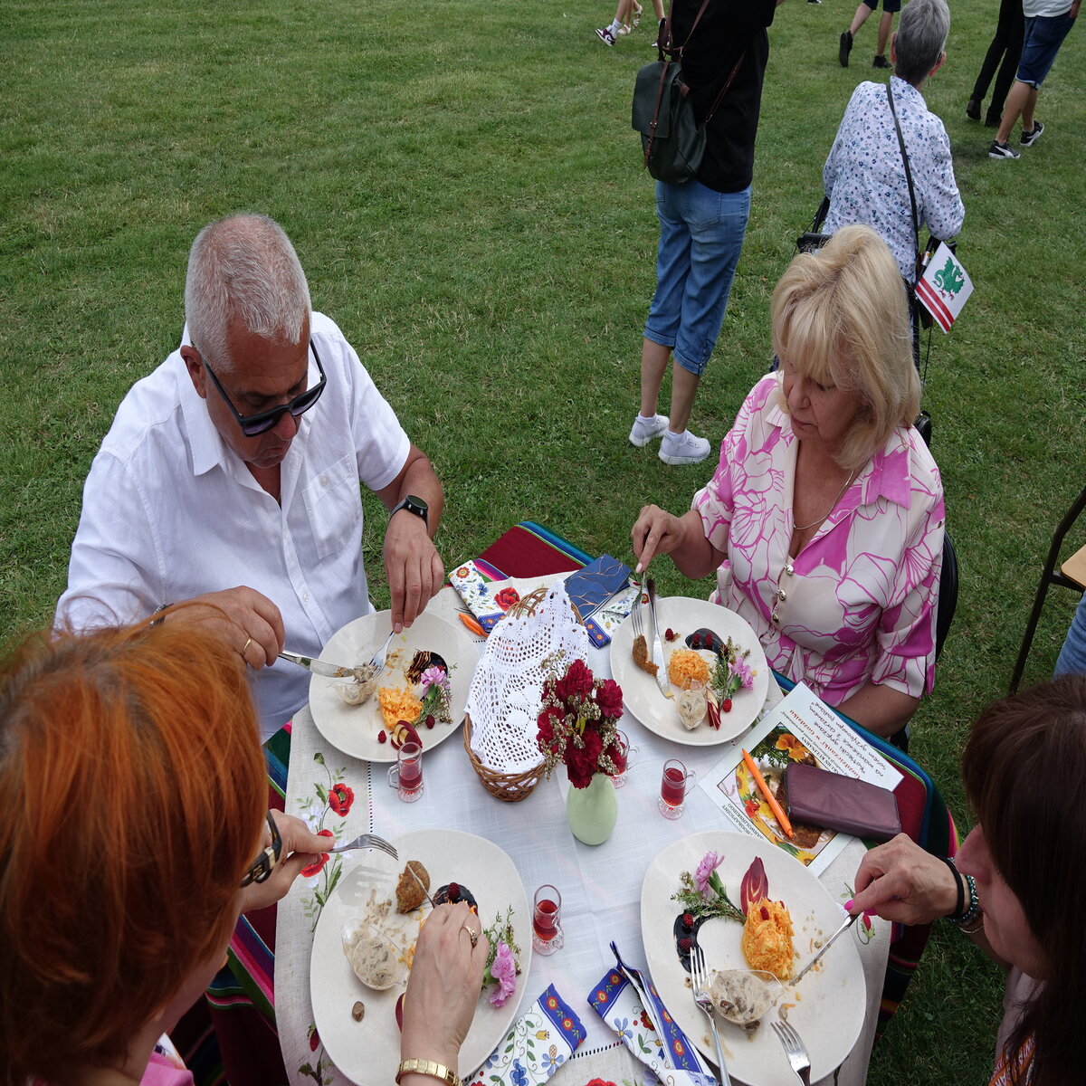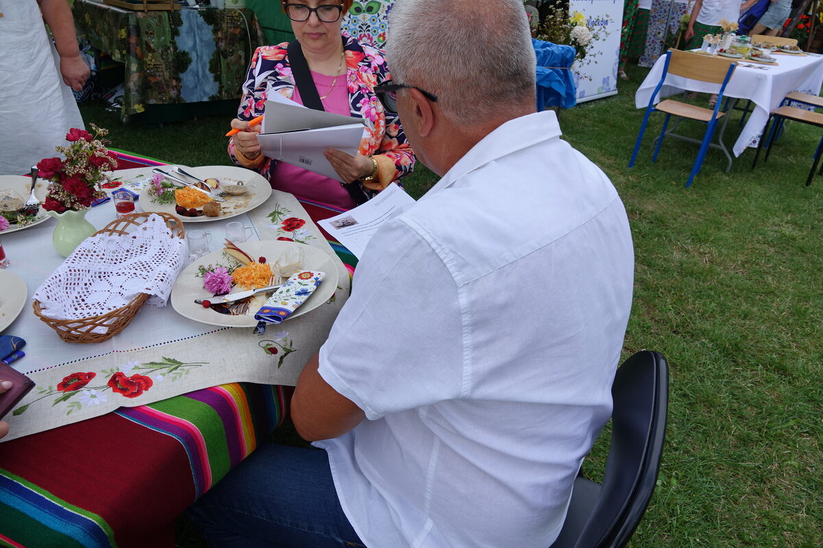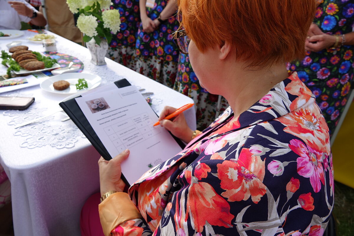 Drugi etap rozgrywał się na oczach publiczności w przepięknej scenerii festiwalu w Miętnem. To właśnie tutaj, wśród dźwięków ludowej muzyki, kolorowych strojów i niezwykłej atmosfery folkloru, komisja konkursowa w składzie: Jolanta Nafalska, Krystyna Antolak oraz Tomasz Wesołowski, miała niezwykle trudne zadanie — wyłonić tę jedną, najlepszą potrawę z kaszy, która zasłuży na najwyższe laury. Zapachy kasz, przypraw, leśnych grzybów i duszonej kapusty unosiły się nad Miętnem, przyciągając tłumy gości i mieszkańców.