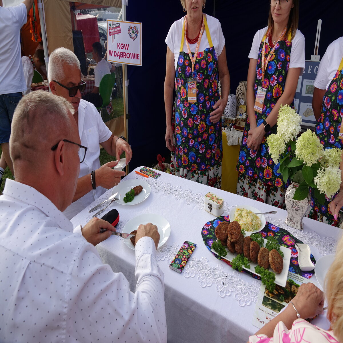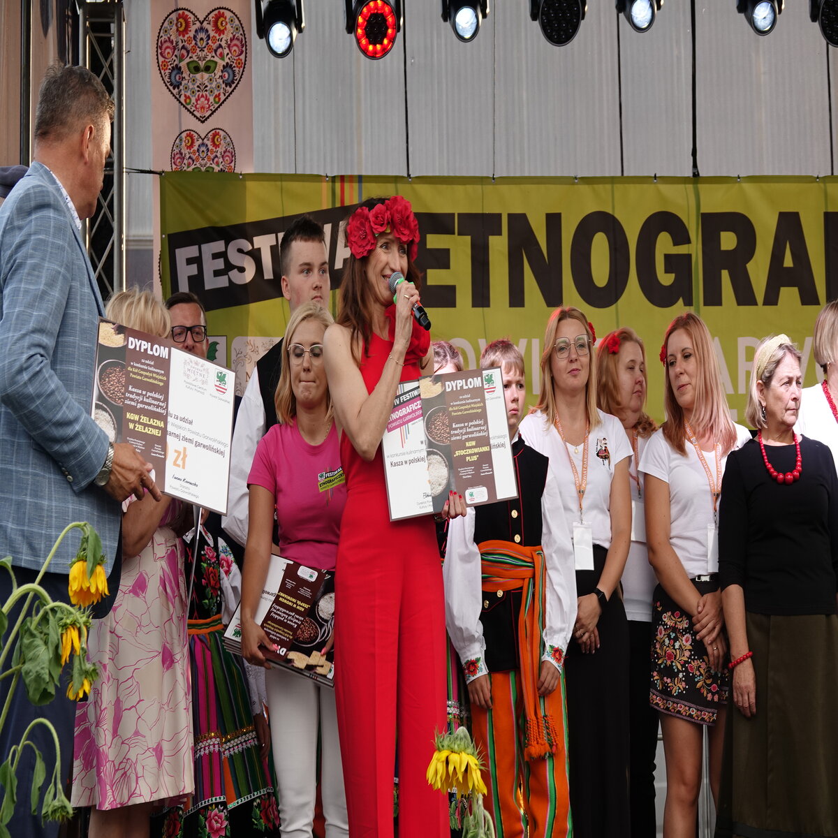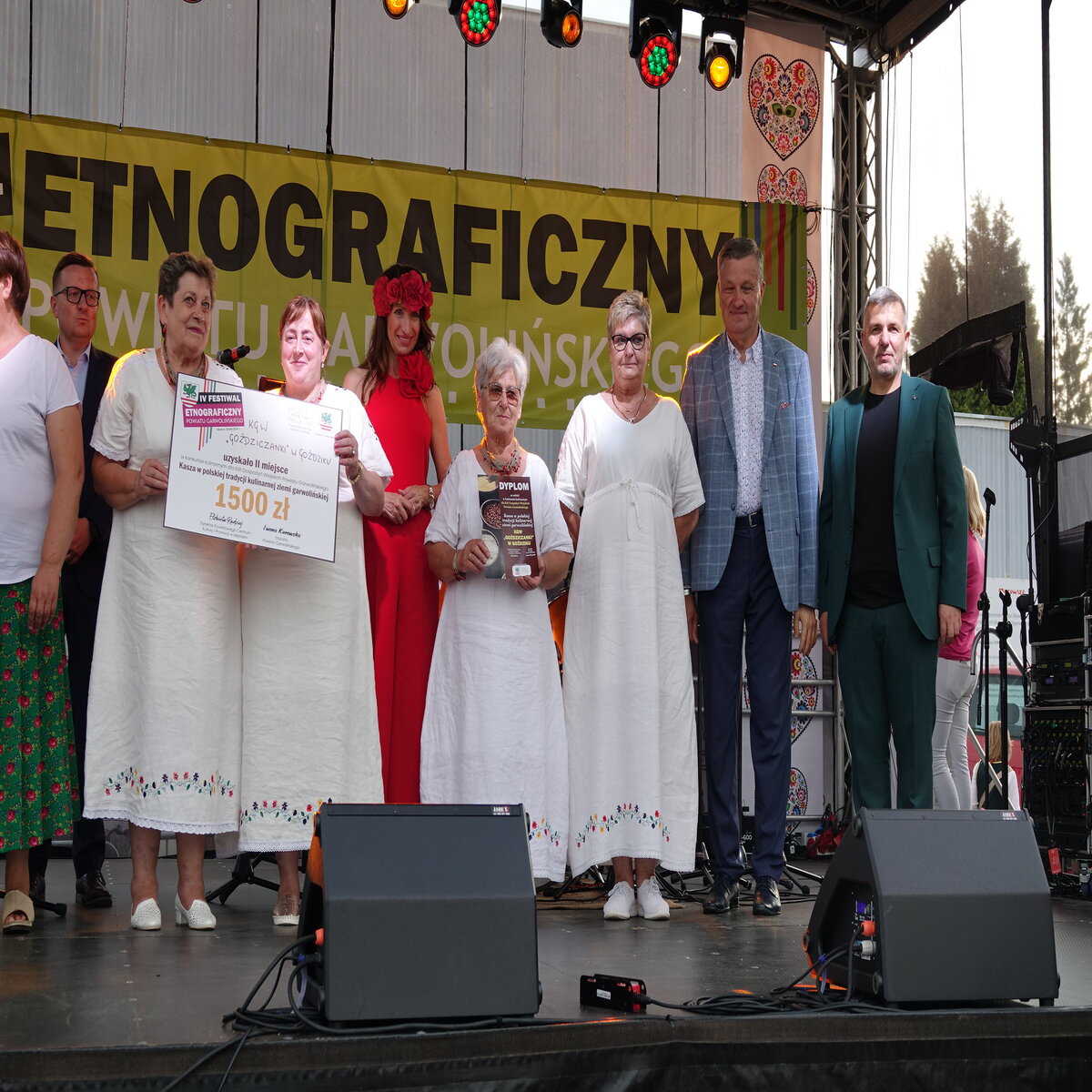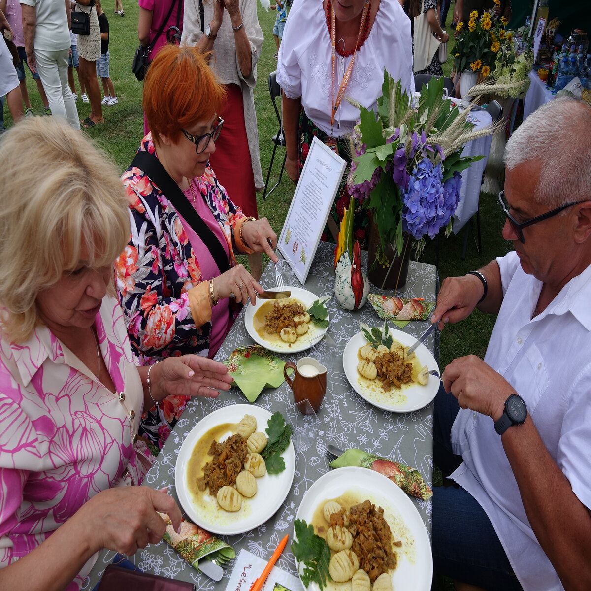 Drugi etap rozgrywał się na oczach publiczności w przepięknej scenerii festiwalu w Miętnem. To właśnie tutaj, wśród dźwięków ludowej muzyki, kolorowych strojów i niezwykłej atmosfery folkloru, komisja konkursowa w składzie: Jolanta Nafalska, Krystyna Antolak oraz Tomasz Wesołowski, miała niezwykle trudne zadanie — wyłonić tę jedną, najlepszą potrawę z kaszy, która zasłuży na najwyższe laury. Zapachy kasz, przypraw, leśnych grzybów i duszonej kapusty unosiły się nad Miętnem, przyciągając tłumy gości i mieszkańców.