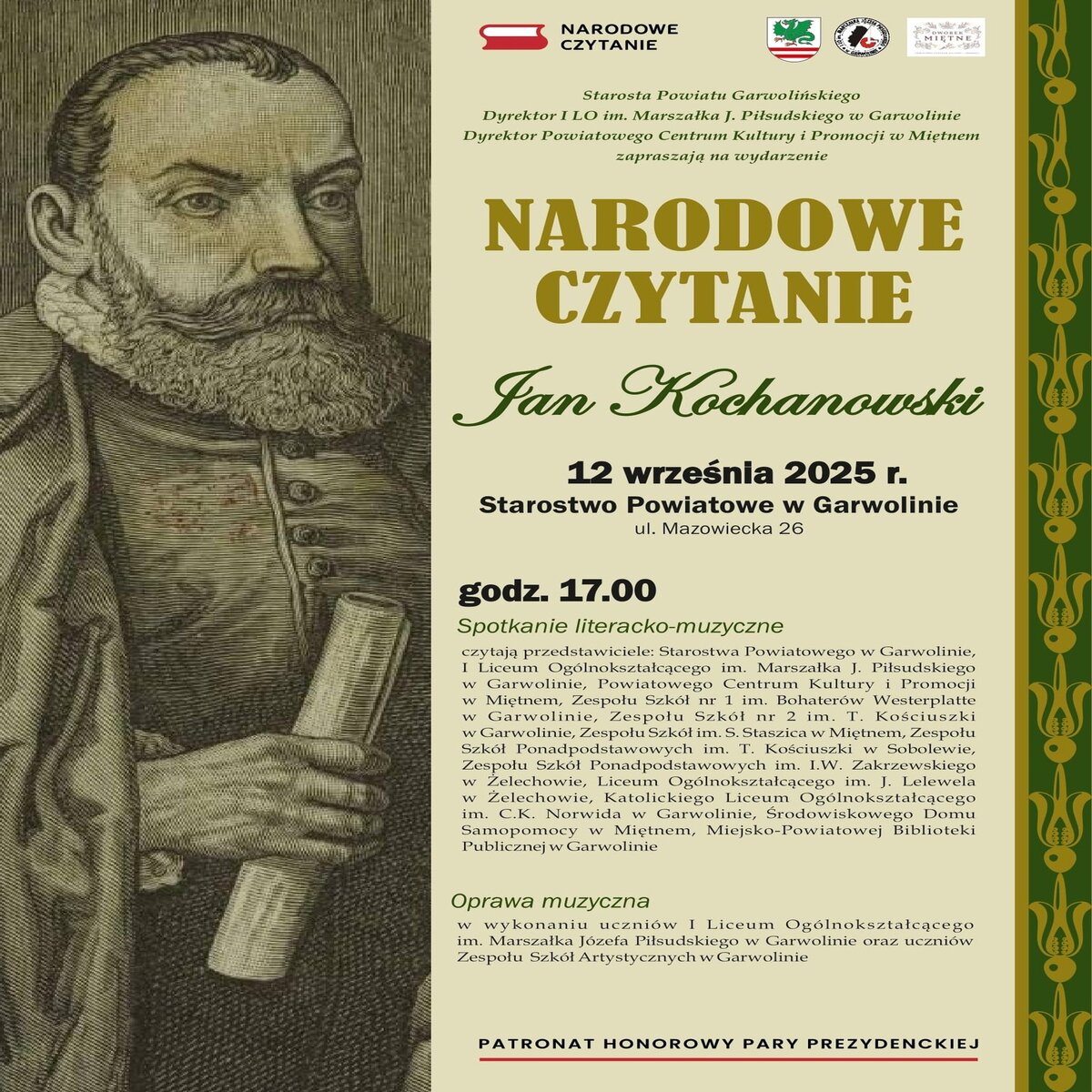 Wieść gminna niesie, iż dnia 12 września Roku Pańskiego 2025, o godzinie 17:00, w murach Starostwa Powiatowego w Garwolinie dziać się będzie rzecz wielka i piękna.