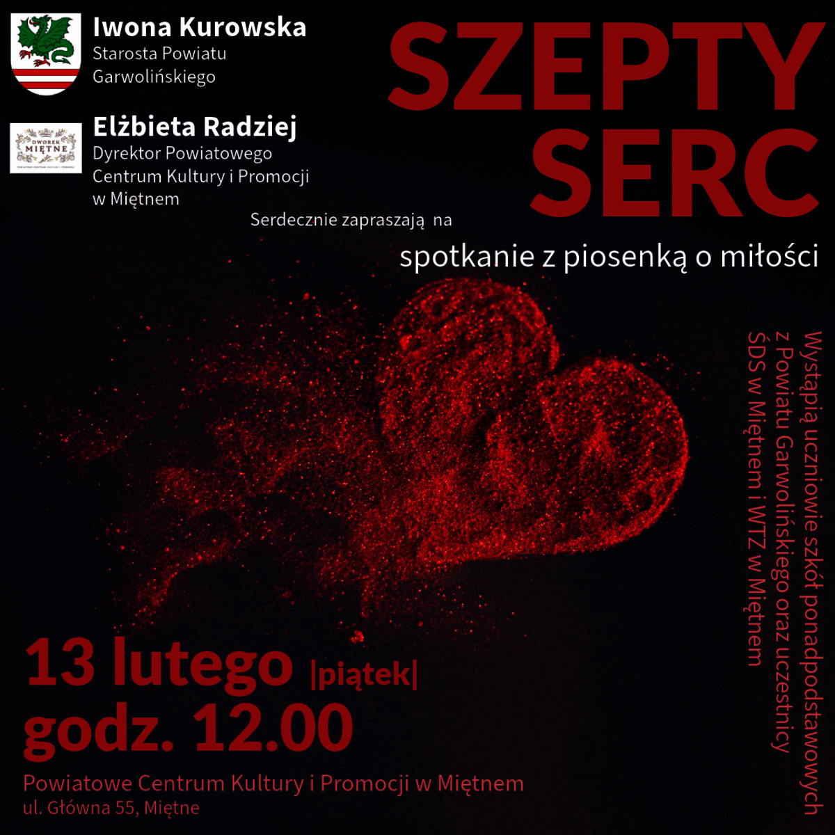 Podczas spotkania usłyszymy piosenki o miłości w wykonaniu uczniów szkół ponadpodstawowych z terenu Powiatu Garwolińskiego oraz uczestników placówek wsparcia.