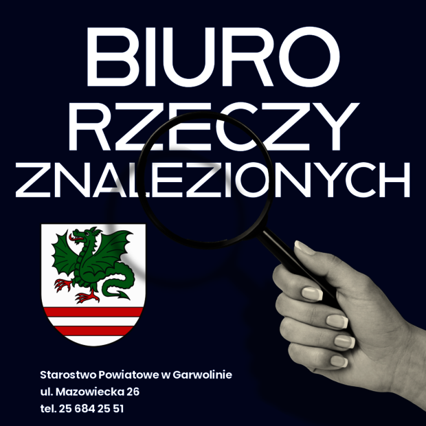 Wydział Organizacyjno-Administracyjny Starostwa Powiatowego w Garwolinie w imieniu Starosty Garwolińskiego prowadzi Biuro Rzeczy Znalezionych.