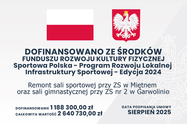 Remont sali sportowej przy ZS w Miętnem oraz sali gimnastycznej przy ZS nr 2 w Garwolinie