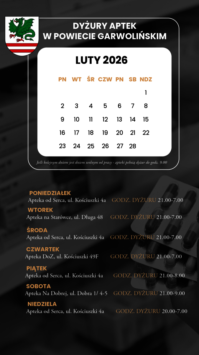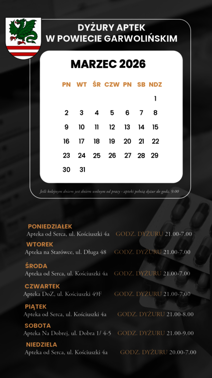 Poniżej przedstawiamy aktualny harmonogram dyżurów aptek w 2026 r.